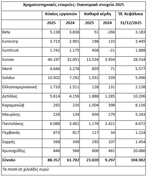 H θερμή περυσινή χρηματιστηριακή χρονιά συνοδεύτηκε από πολύ υψηλούς όγκους συναλλαγών, νέες εισαγωγές εταιρειών σε Κύρια και Εναλλακτική Αγορά, αρκετές ομολογιακές εκδόσεις και σημαντικό αριθμό αυξήσεων μετοχικού κεφαλαίου ήδη εισηγμένων εταιρειών, με αποτέλεσμα το σύνολο αυτών των εξελίξεων να επηρεάσει ανοδικά και τις οικονομικές επιδόσεις των ΑΧΕΠΕΥ για το 2025.