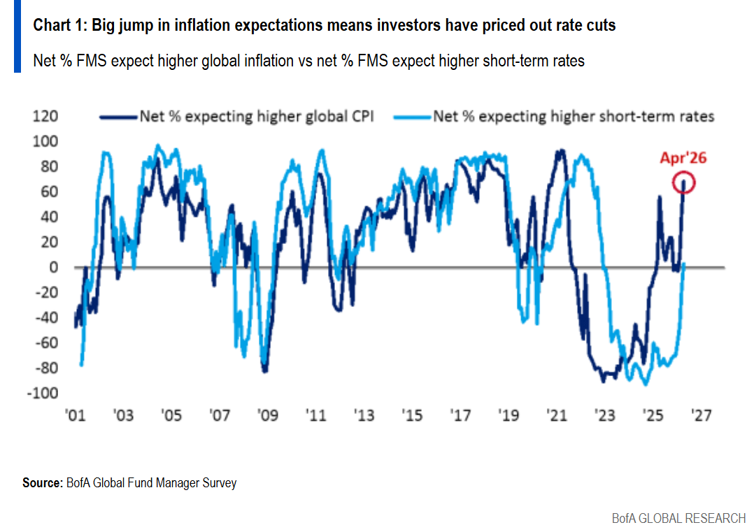 Η τελευταία έρευνα διαχειριστών κεφαλαίων της Bank of America αποτυπώνει μια απότομη μεταστροφή του επενδυτικού κλίματος, με τους επενδυτές να προεξοφλούν επιβράδυνση της παγκόσμιας ανάπτυξης, υπό την πίεση του ενεργειακού σοκ και της ανόδου του πληθωρισμού μετά την κρίση στη Μέση Ανατολή.