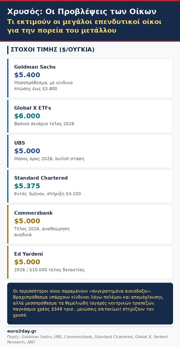 «Το βασικό σενάριο για τον χρυσό παραμένει στα $6000 ανά ουγκιά έως το τέλος του έτους, με τις πρόσφατες τιμές να αποτελούν ένα ελκυστικό σημείο εισόδου για τους επενδυτές», σύμφωνα με την Global X ETFs.