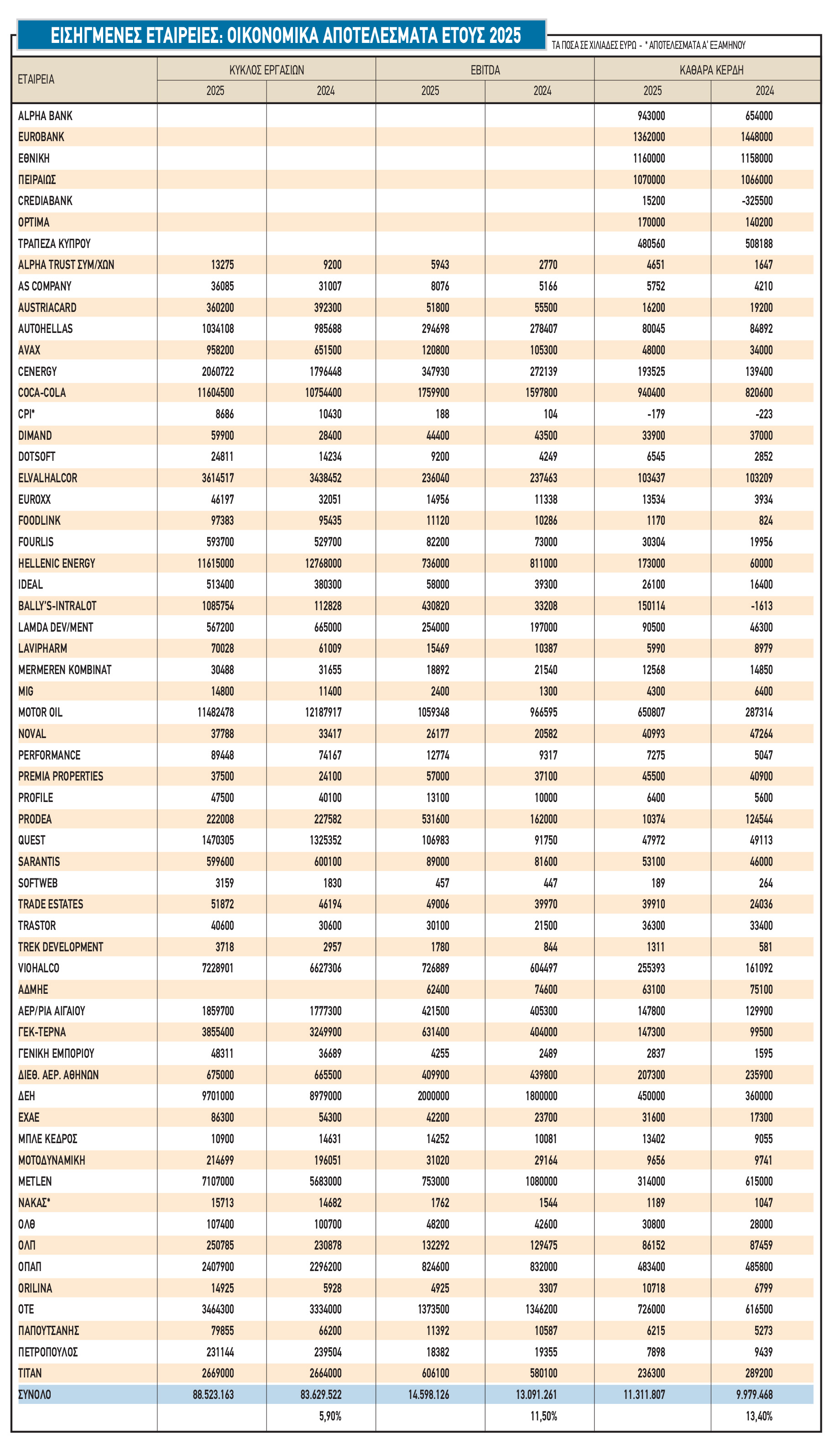 Για παράδειγμα, η αθροιστική καθαρή κερδοφορία εξήντα εισηγμένων εταιρειών για το 2025 κινείται 13% ψηλότερα από την αντίστοιχη της προηγούμενης χρονιάς και, όπως όλα δείχνουν, θα ξεπεραστεί το επίπεδο των 11,5 δισ. ευρώ του 2024. Επίσης, όλα δείχνουν πως τα φετινά μερίσματα και οι επιστροφές κεφαλαίου θα ξεπεράσουν την περυσινή επίδοση των 5,9 δισ. ευρώ.