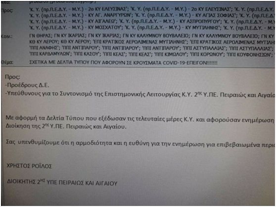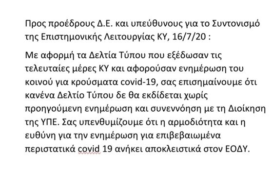 Δηλαδή, η ενημέρωση για το τι θα εξελισσόταν σε κάθε νησί, θα συνεχιζόταν αποκλειστικά από τον ΕΟΔΥ.
