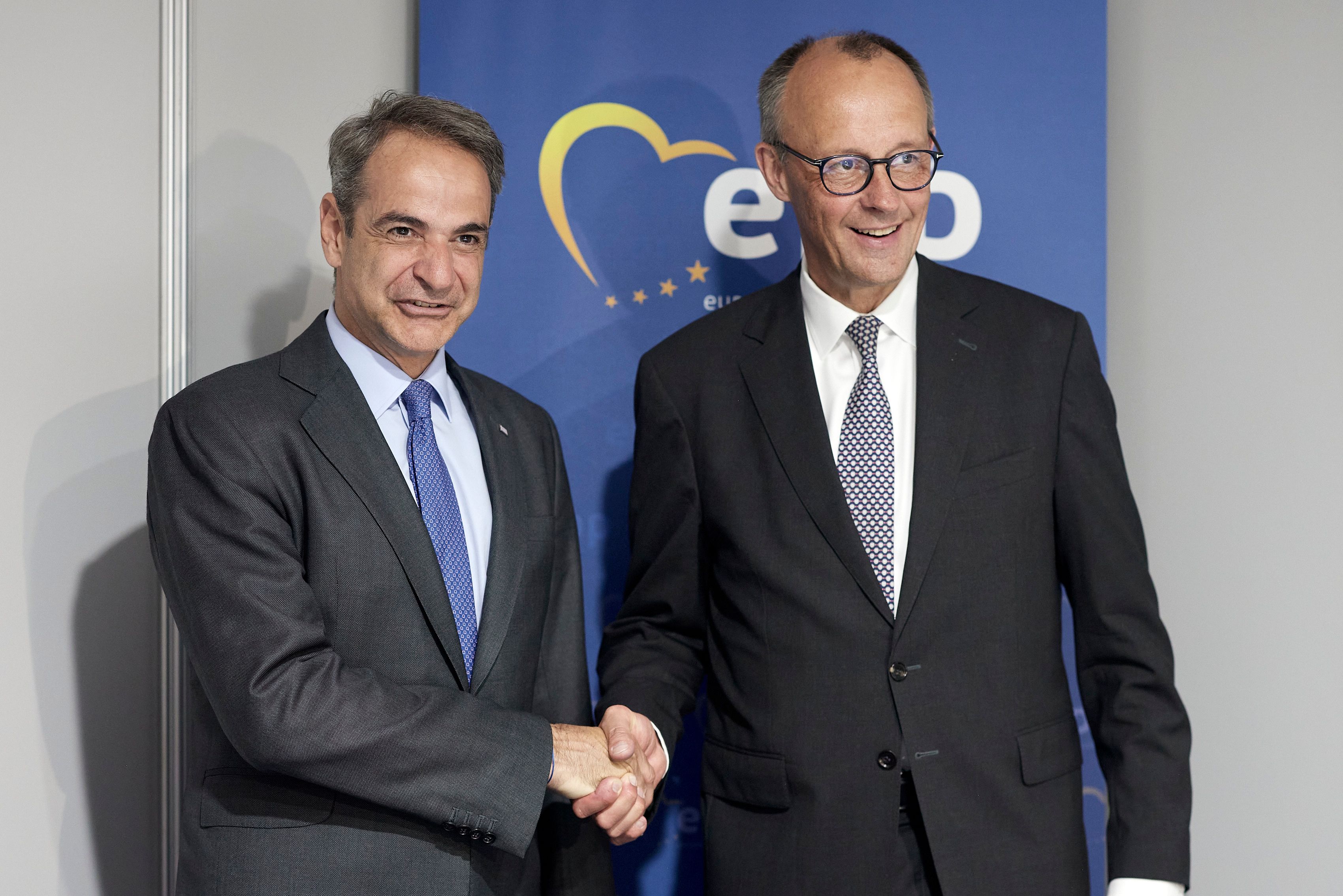 Mε τον επικεφαλής της κοινοβουλευτικής ομάδας του CDU και εκλεγμένο καγκελάριο της Γερμανίας, Φρίντριχ Μερτς, συναντήθηκε ο πρωθυπουργός στο περιθώριο του συνεδρίου του Ευρωπαϊκού Λαϊκού Κόμματος στη Βαλένθια της Ισπανίας.
