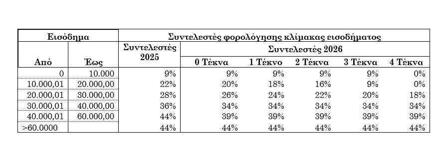 - Καθιερώνεται ενδιάμεσος συντελεστής 39% από 44% σήμερα.