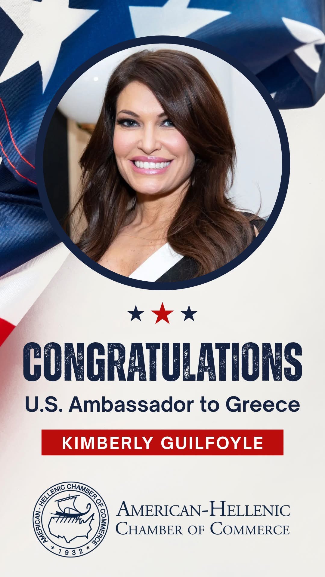 Με ανάρτησή του στα μέσα κοινωνικής δικτύωσης, το Ελληνοαμερικανικό Εμπορικό Επιμελητήριο εξέφρασε τα ειλικρινή του συγχαρητήρια προς την Κίμπερλι Γκιλφόϊλ, η οποία επικυρώθηκε ως η 25η πρέσβειρα των Ηνωμένων Πολιτειών στην Ελληνική Δημοκρατία.