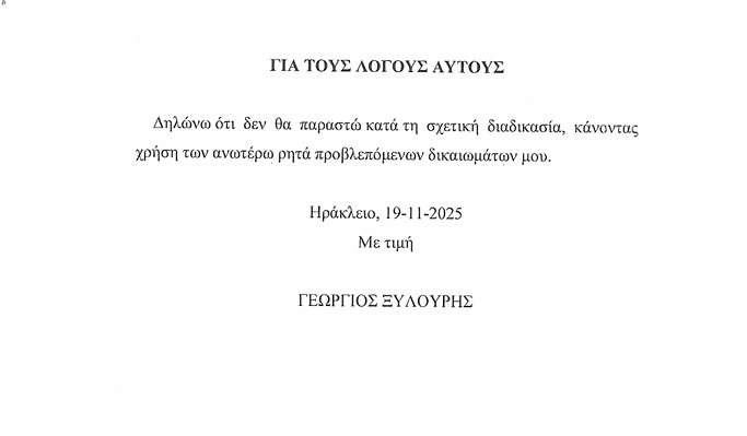 Η άρνησή του να προσέλθει δεν έχει κανένα νομικό έρεισμα. Οι Εξεταστικές Επιτροπές λειτουργούν ως ανακριτικές και εισαγγελικές αρχές, και το καθήκον μαρτυρίας είναι δεσμευτικό. Η άρνησή του υποδηλώνει τον φόβο του για πιθανή άσκηση ποινικής δίωξης. Η αλήθεια είναι απλή: ο κ. Ξυλούρης αποφεύγει τη Βουλή γιατί εκεί θα αναγκαζόταν να αποκαλύψει όσα η Νέα Δημοκρατία επιθυμεί να μείνουν στο σκοτάδι.