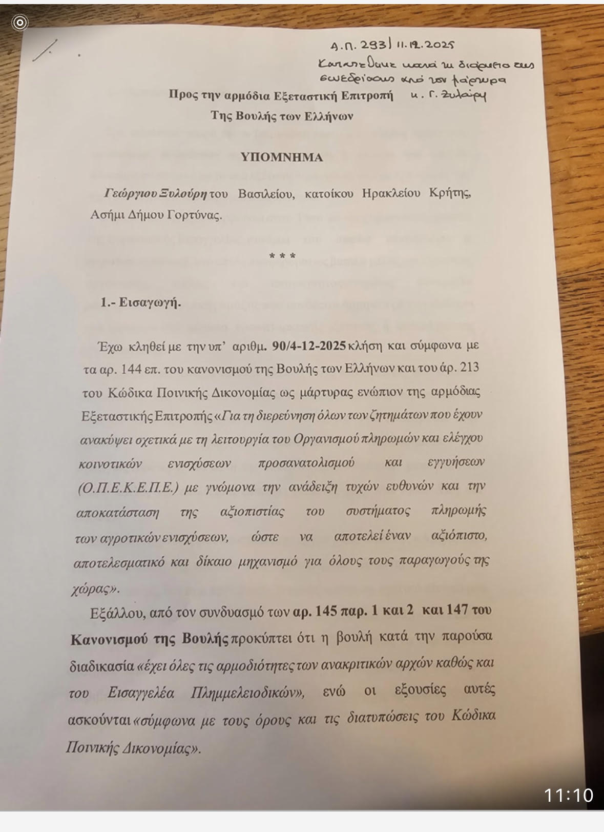 • Με ποια ιδιότητα μπορούσε να συνομιλεί με τους Προέδρους του ΟΠΕΚΕΠΕ και του Γενικούς Γραμματείς δίνοντας εντολή και ζητώντας να σταματήσουν οι έλεγχοι.
