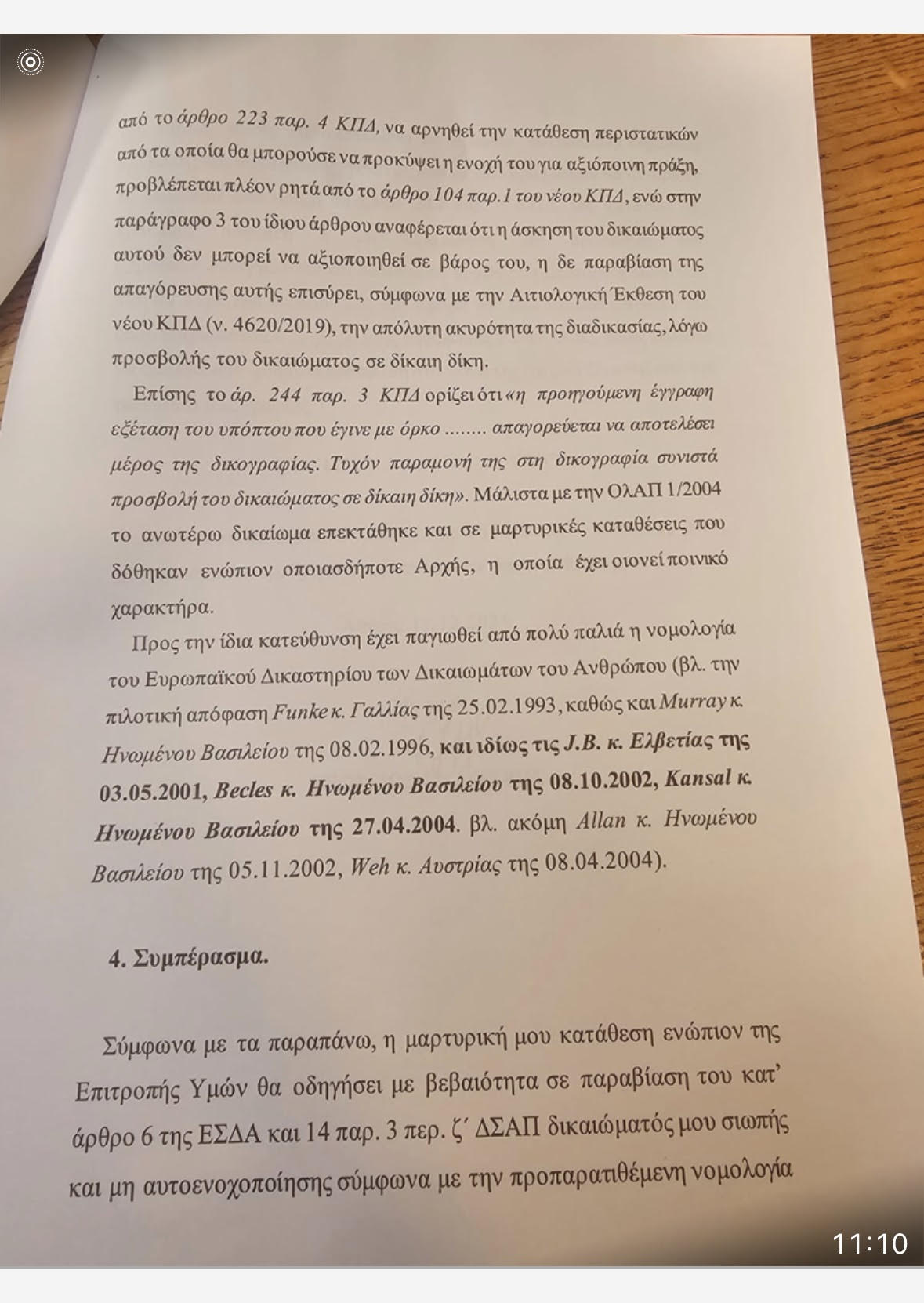 “Δεν μπορώ να απαντώ σε ερωτήσεις για κάτι που δεν ξέρω. Δεν θα μπω στη διαδικασία να αυτοκατηγορηθώ για πράγματα που δεν έχω λάβει γνώση”, κατέληξε, προβάλλοντας το αίτημά του: “Επικαλούμαι το δικαίωμα στη σιωπή και δεν θα απαντήσω σε καμία ερώτηση σας.