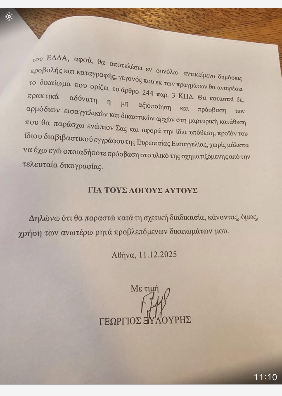 Όσα ισχυρίστηκε ο κ. Λαζαρίδης, ως «συνήγορος υπεράσπισης» του μάρτυρα, είναι νομικά ανυπόστατα, εσφαλμένα και παραπειστικά! Ο κ. Ξυλούρης δεν είναι ύποπτος, διότι δεν έχει κληθεί σε προκαταρτική διαδικασία. Είχε υποχρέωση μαρτυρίας ως μάρτυρας!