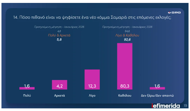 Η συνολική δυνητική ψήφος για τον κ. Σαμαρά αποτυπώνεται στο 5,8%.