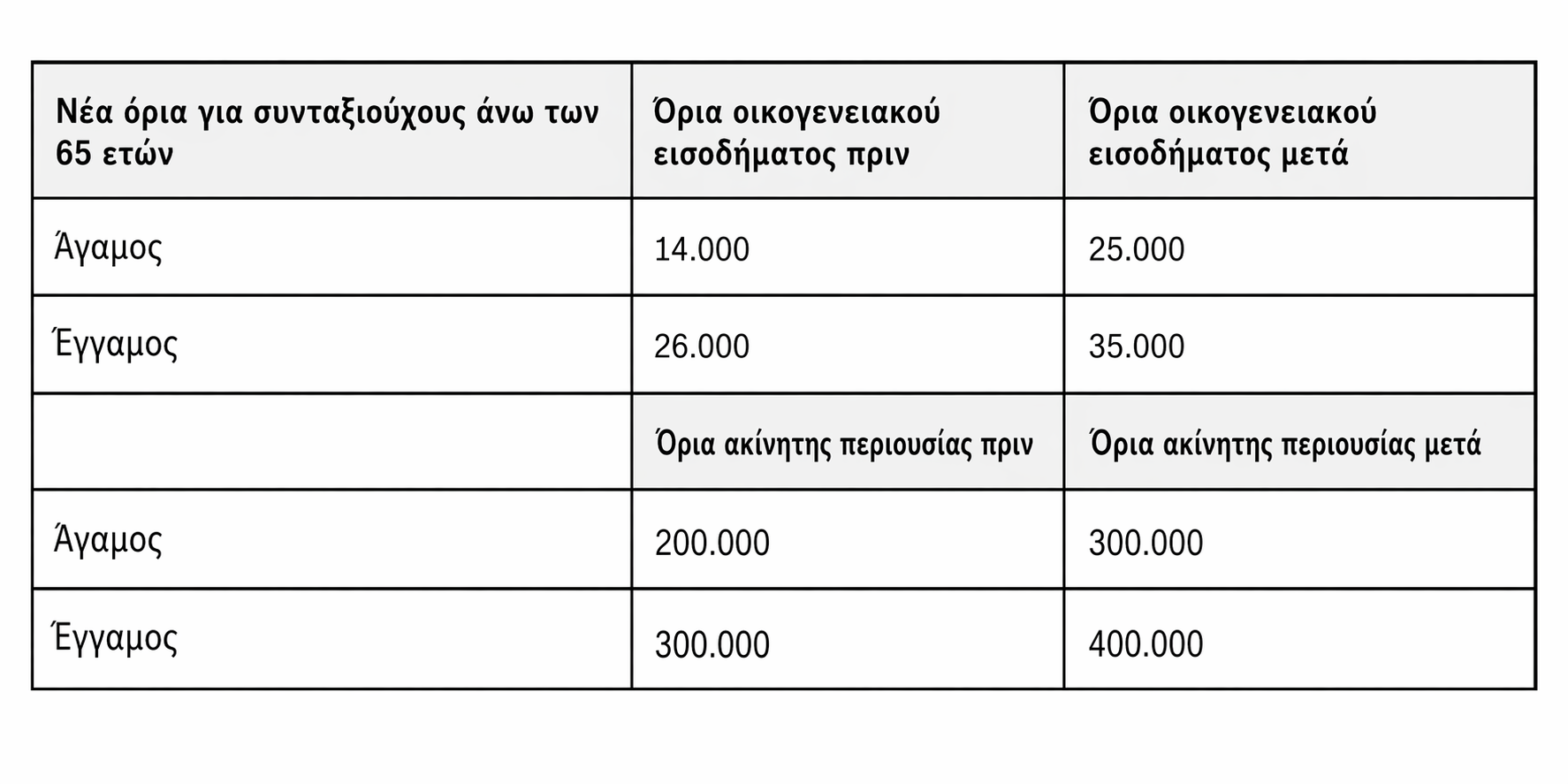 - Διεύρυνση ορίων εισοδήματος και ακίνητης περιουσίας
