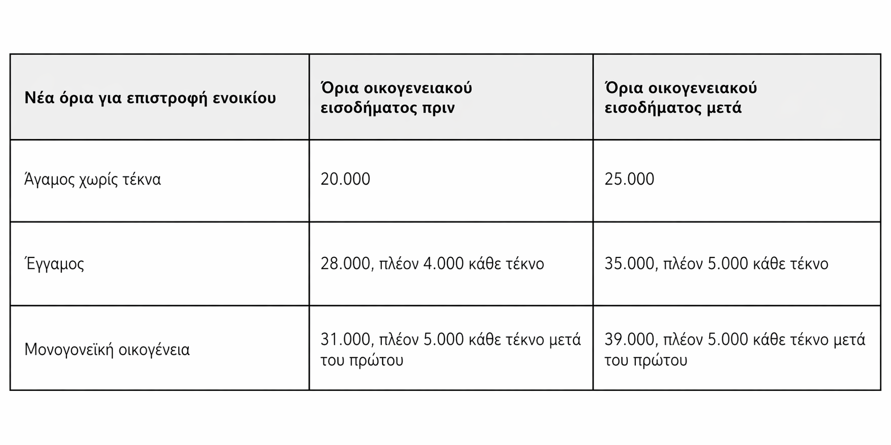 - Αύξηση ορίων εισοδήματος επιστροφής ενοικίου