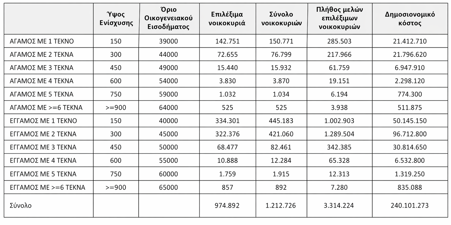 - Οικονομική ενίσχυση οικογενειών με παιδιά