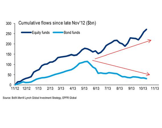 To ποσό των $12,4 δισ. τοποθέτησαν την τελευταία εβδομάδα επενδυτές στα funds που δραστηριοποιούνται σε μετοχές, επεκτείνοντας τις εισροές ρεκόρ το 2013 στα $231 δισ., σύμφωνα με στοιχεία της Bank of America Merill Lynch.