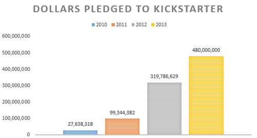 To ποσό των 480 εκατ. δολαρίων κατέβαλαν συνολικά τρία εκατομμύρια χρήστες στο Kickstarter το 2013, υψηλότερο κατά 50% σε σχέση με το 2012.