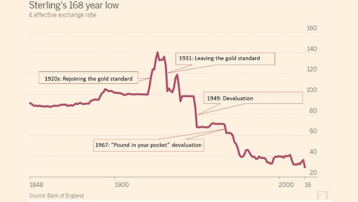Όπως μεταδίδουν οι Financial Times, το επίπεδο αυτό είναι χαμηλότερο από αυτό στο οποίο είχε διολισθήσει η στερλίνα κατά την διάρκεια της κρίσης του 2008, μετά την έξοδο από τον ευρωπαϊκό μηχανισμό συναλλαγματικών ισοτιμιών το 1992 και την απόφαση να εγκαταλειφθεί ο κανόνας το χρυσού τη δεκαετία του 1930.