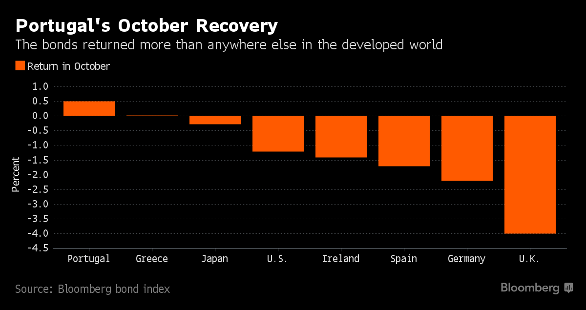 Τα πορτογαλικά ομόλογα έκαναν ράλι μετά την ανακοίνωση της DBRS στις 21 Οκτωβρίου ότι αποφάσισε να διατηρήσει την πιστοληπτική αξιολόγηση της χώρας στο ΒΒΒ, την χαμηλότερη επενδυτική βαθμίδα μεν, αλλά μια βαθμίδα που εξασφαλίζει τη συμμετοχή των πορτογαλικών ομολόγων στο πρόγραμμα ποσοτικής χαλάρωσης της ΕΚΤ.