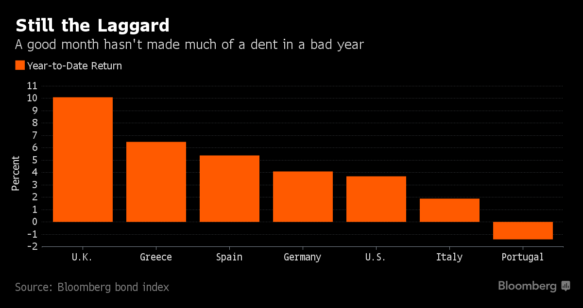 Τα πορτογαλικά ομόλογα μπορεί να εμφανίζουν τις χειρότερες επιδόσεις στην Ευρώπη από την αρχή του έτους, ωστόσο αυτόν τον μήνα έδωσαν τις μεγαλύτερες αποδόσεις τους επενδυτές, σύμφωνα με τα στοιχεία του Bloomberg.