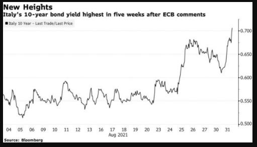 Οι αποδόσεις στα βραχυπρόθεσμα ιταλικά ομόλογα έφτασαν να αυξάνονται περίπου 20 μονάδες βάσης, με του 2ετούς να ξεπερνάει το 1,4% και το επιτόκιο του 5ετούς να φτάνει στο 2,64%, στα υψηλά της μεσημεριανής συνεδρίασης.