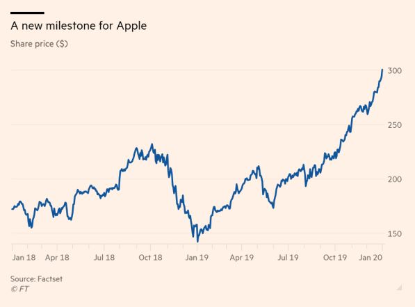 Για πρώτη φορά ξεπέρασε το ορόσημο των $300 η μετοχή της Apple