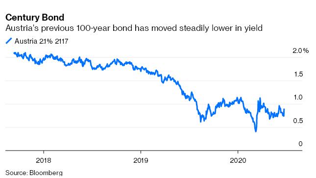 Η Αυστρία επέστρεψε στο κλαμπ των εκδοτών ομολόγων με ωρίμανση 100 χρόνων, με νέα έκδοση ύψους 2 δισ. ευρώ και τους πιο ευνοϊκούς όρους μέχρι στιγμής στους τίτλους του είδους, καθώς η απόδοση του ομολόγου διαμορφώνεται στο 0,88%.