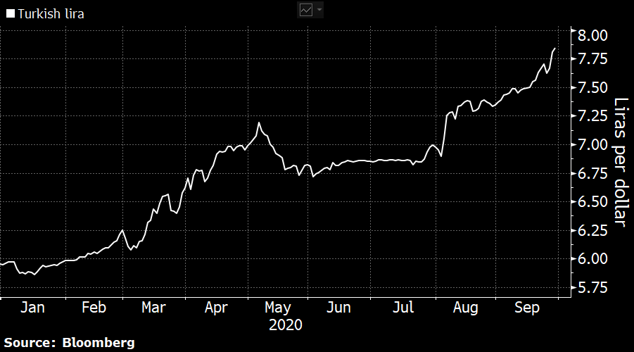 Η λίρα, η οποία έχει χάσει τη μισή αξία της από τη μεγάλη κρίση του 2018, σφυροκοπείται φέτος από τις ανησυχίες για τα μειωμένα συναλλαγματικά διαθέσιμα της Τουρκίας και τα αρνητικά πραγματικά επιτόκια, με την κεντρική τράπεζα της χώρας να κάνει λίγα πράγματα την περασμένη εβδομάδα για να τις περιορίσει, όπως ανέφεραν αναλυτές.