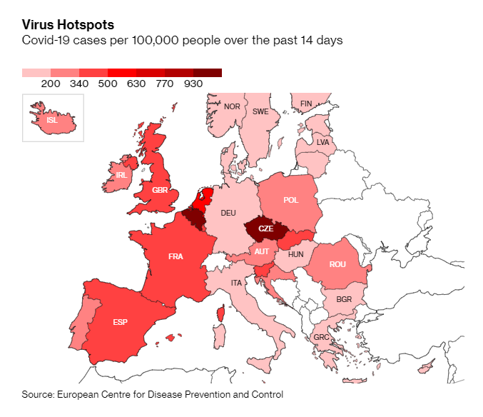 Μια ανοδική τάση που παρατηρείται σε πολλές ευρωπαϊκές χώρες, οι οποίες επέλεξαν να επιβάλουν μίνι lockdown και απαγορεύσεις κυκλοφορίας, για να περιορίσουν την εξάπλωση της πανδημίας.