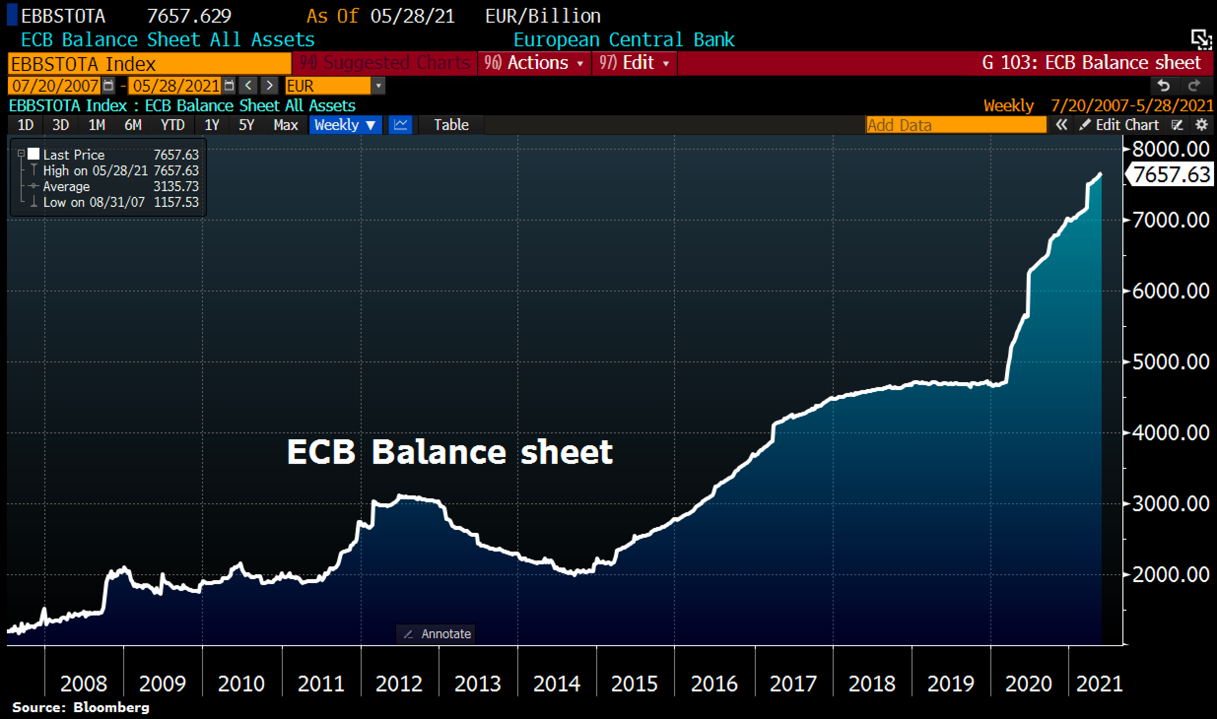 Ο ισολογισμός της ΕΚΤ έφτασε σε νέα υψηλά στα 7,66 τρισ. ευρώ καθώς η πρόεδρος Κριστίν Λαγκάρντ εξασφαλίζει ότι η εκτύπωση χρήματος θα συνεχιστεί με παρεμβάσεις μέσω του PEPP. Τα πιεστήρια δεν σταματούν να δουλεύουν για αγορές κρατικών αλλά και εταιρικών ομολόγων ώστε να κρατηθεί χαμηλά το κόστος του χρήματος στην Ευρωζώνη.