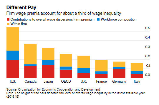 Σύμφωνα με έρευνα του ΟΟΣΑ, περίπου το ένα τρίτο της μισθολογικής ανισότητας οφείλεται σε κενά στις πολιτικές αμοιβών μεταξύ των εργοδοτών και όχι στις διαφορετικές δεξιότητες που διαθέτουν οι εργαζόμενοι.