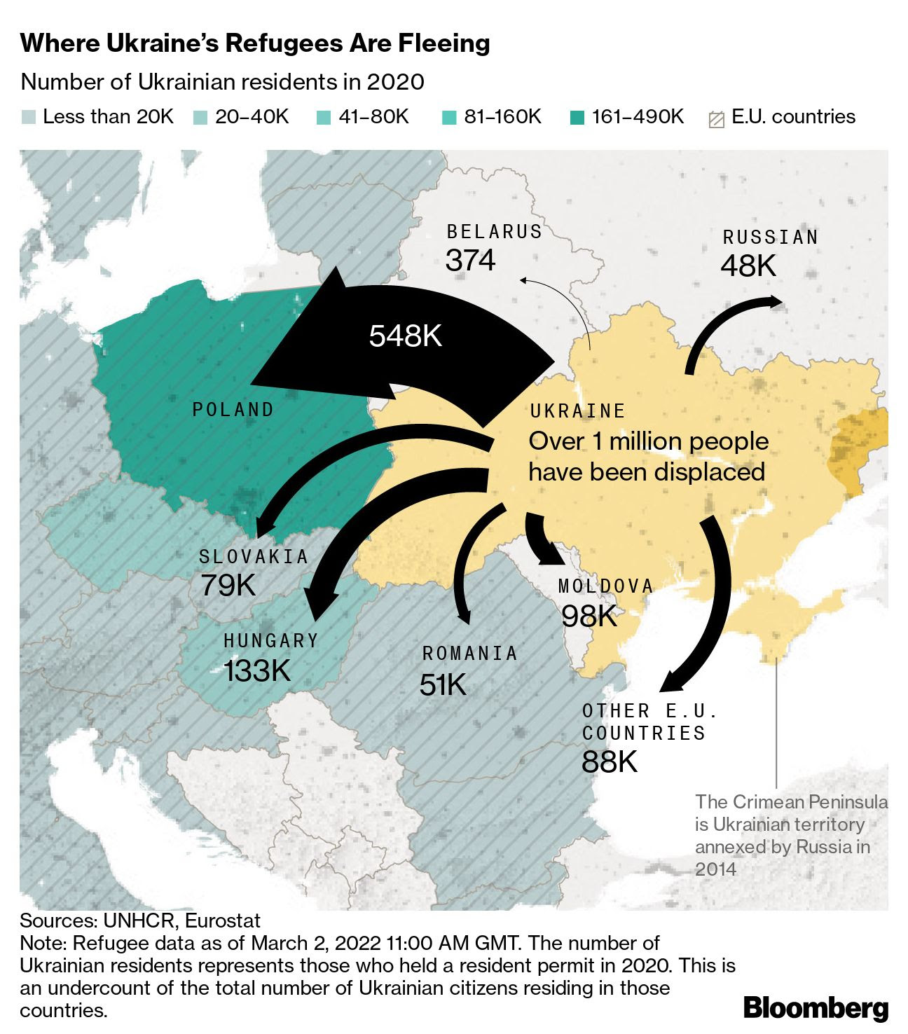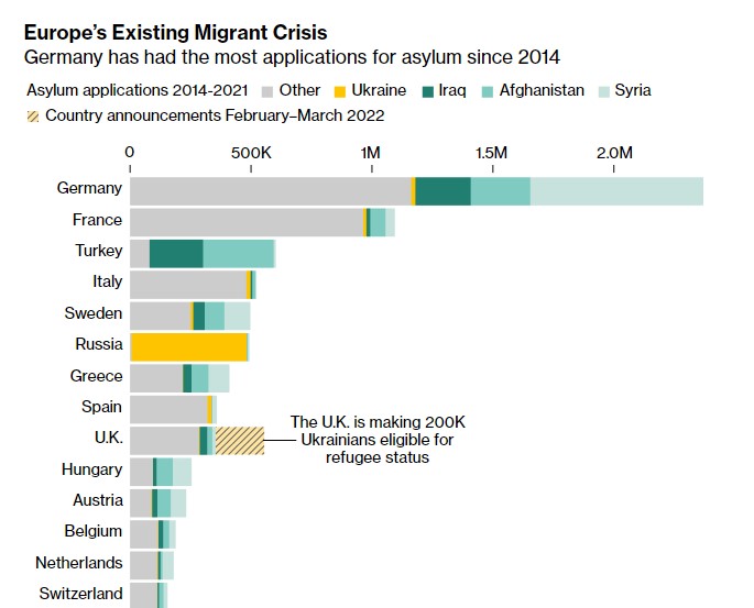 - Η βιασύνη κρατών να δεχτούν και να υποστηρίξουν τους πρόσφυγες της Ουκρανίας είναι μια στροφή για την Ευρώπη, όπου πολλές χώρες εργάζονταν για να κλείσουν τα σύνορά τους.