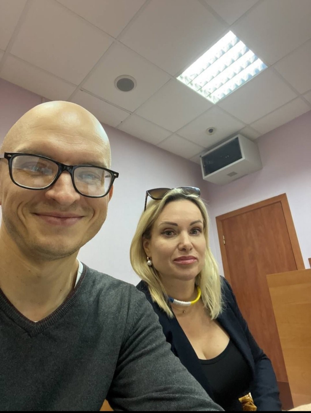 Ρωσικό δικαστήριο επέβαλε σήμερα πρόστιμο 30.000 ρουβλίων (255 ευρώ) στην Μαρίνα Οβσιάνικοβα, αφότου κρίθηκε ένοχη (φωτο κάτω με τον δικηγόρο της) για παραβίαση του νόμου περί διαδηλώσεων, για τη χθεσινή διαμαρτυρία της κατά του πολέμου στην Ουκρανία στο πλατό του πρώτου καναλιού της δημόσιας τηλεόρασης, όπως μετέδωσε το πρακτορείο Reuters επικαλούμενο το RIA Novosti.