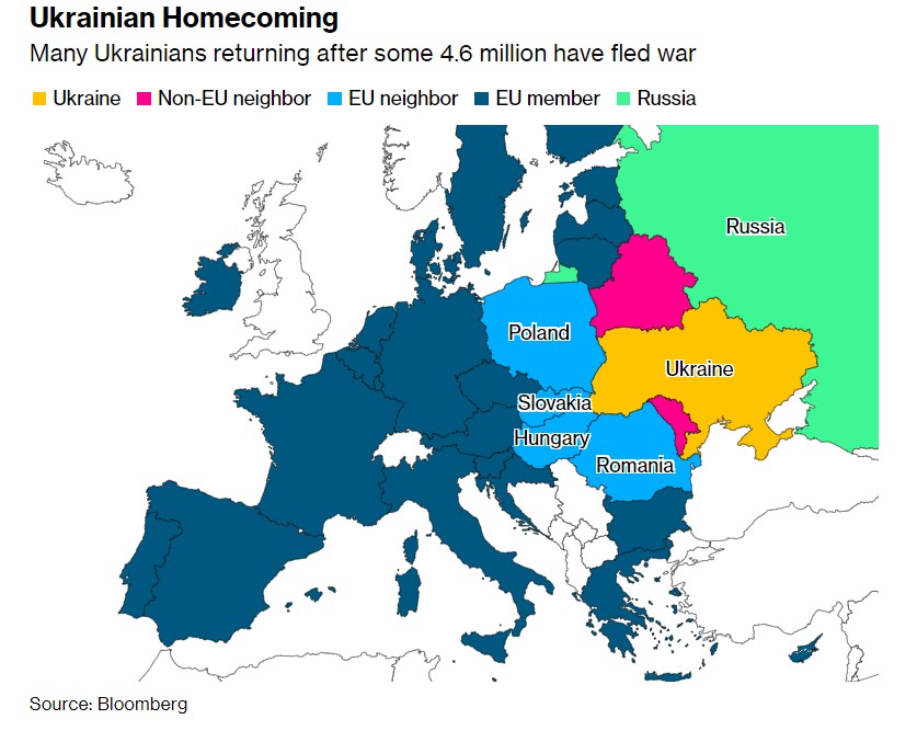 Ενώ η συνολική έξοδος αυξάνεται με πιο αργό ρυθμό και οι νέοι πρόσφυγες φεύγουν από τα ανατολικά και την περιοχή του Ντονμπάς, όλο και περισσότεροι Ουκρανοί επιστρέφουν σε περιοχές όπου πιστεύουν ότι μπορούν να αντέξουν μετακινούμενοι από το εξωτερικό αλλά και το εσωτερικό της χώρας.