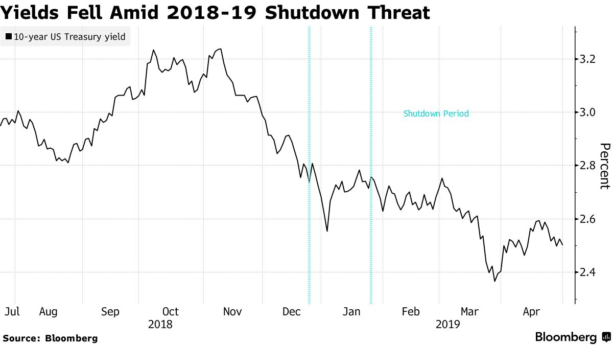 Ο αναλυτής Έντουαρντ Άκτον σημειώνει ότι τα ομόλογα του αμερικανικού δημοσίου με μεγαλύτερες λήξεις σημείωσαν άνοδο κατά την περίοδο πριν από την έναρξη ή κατά τη διάρκεια παρατεταμένων shutdown τις τελευταίες τρεις δεκαετίες.