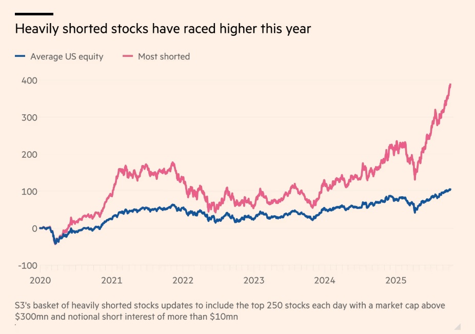 Ένα καλάθι με τις 250 αμερικανικές μετοχές που είναι πιο δημοφιλείς στους short sellers (επενδυτές που ποντάρουν στην πτώση) έχει εκτιναχθεί κατά 57% φέτος, προκαλώντας σημαντικές ζημιές σε όσους στοιχημάτισαν στην πτώση τους, σύμφωνα με υπολογισμούς της εταιρείας δεδομένων S3 Partners.