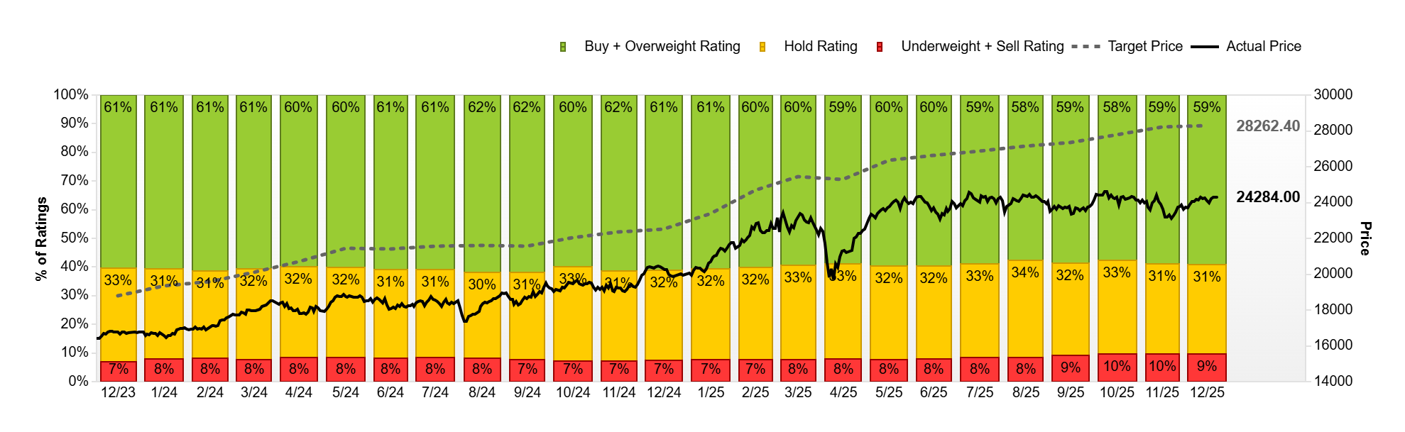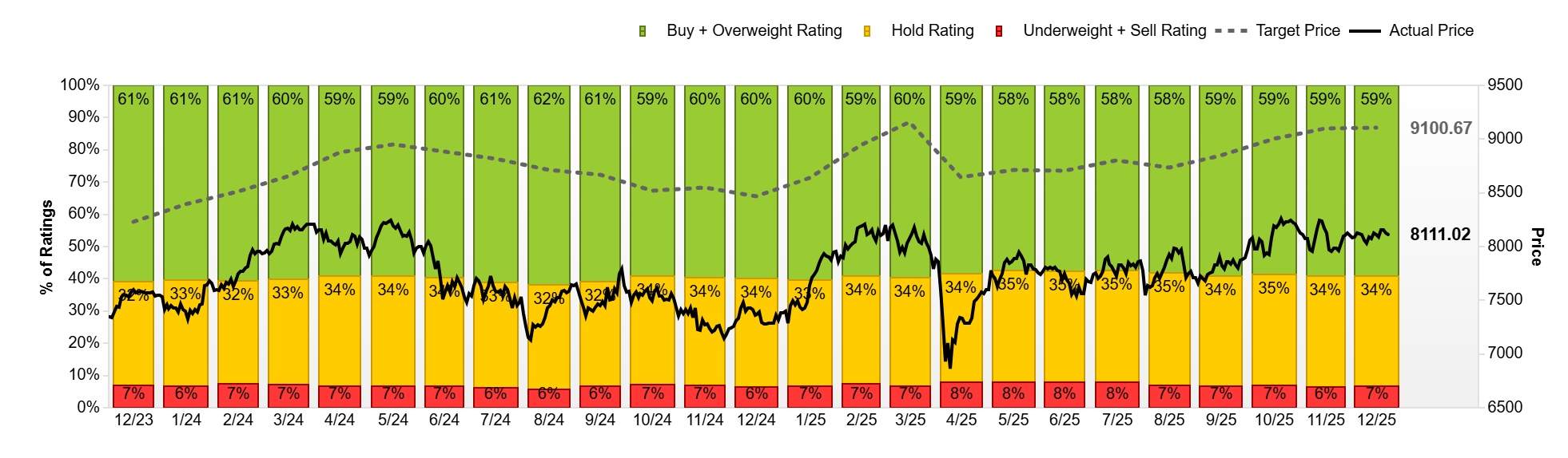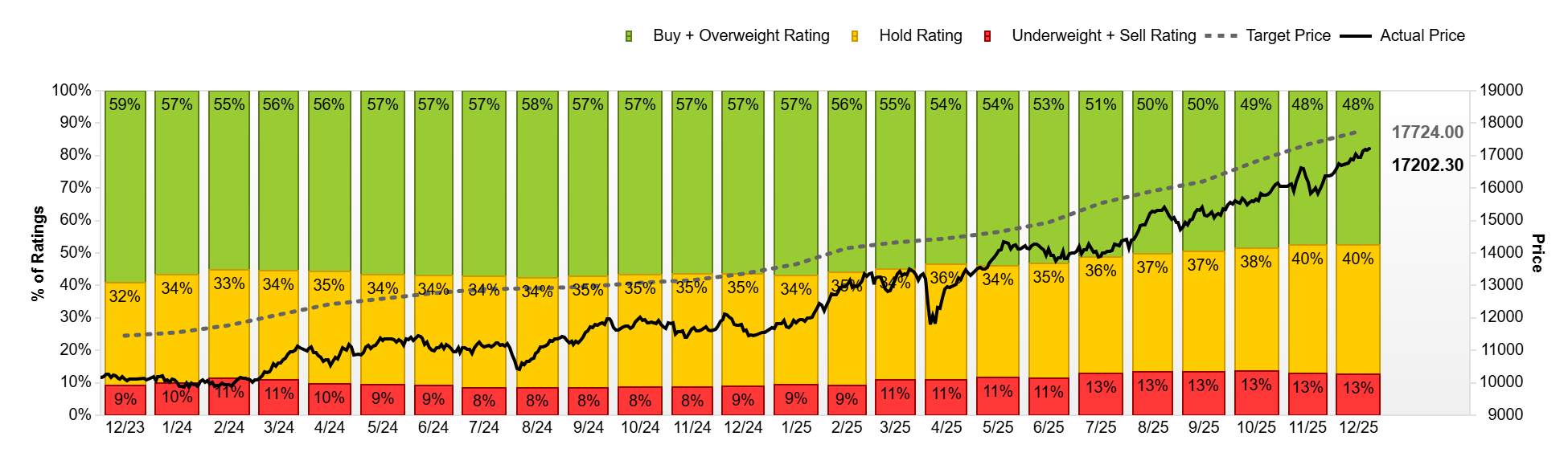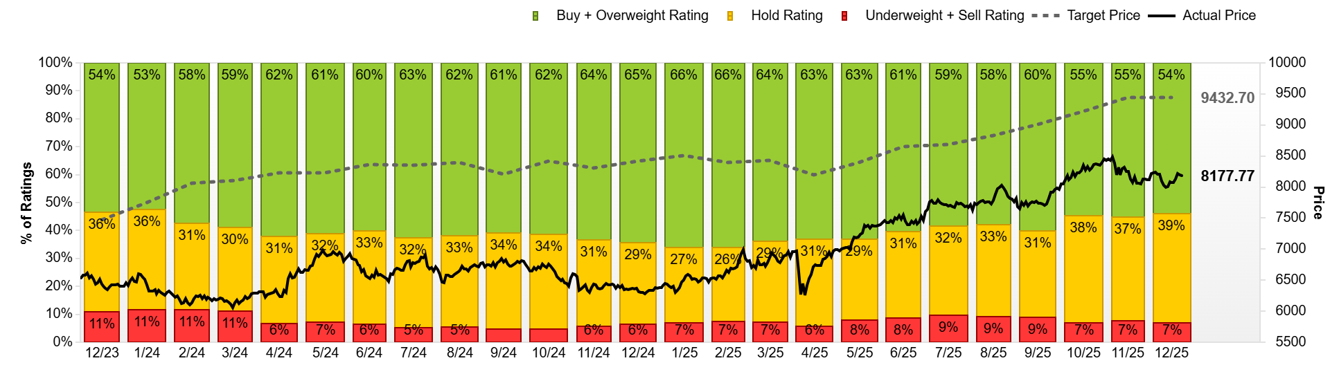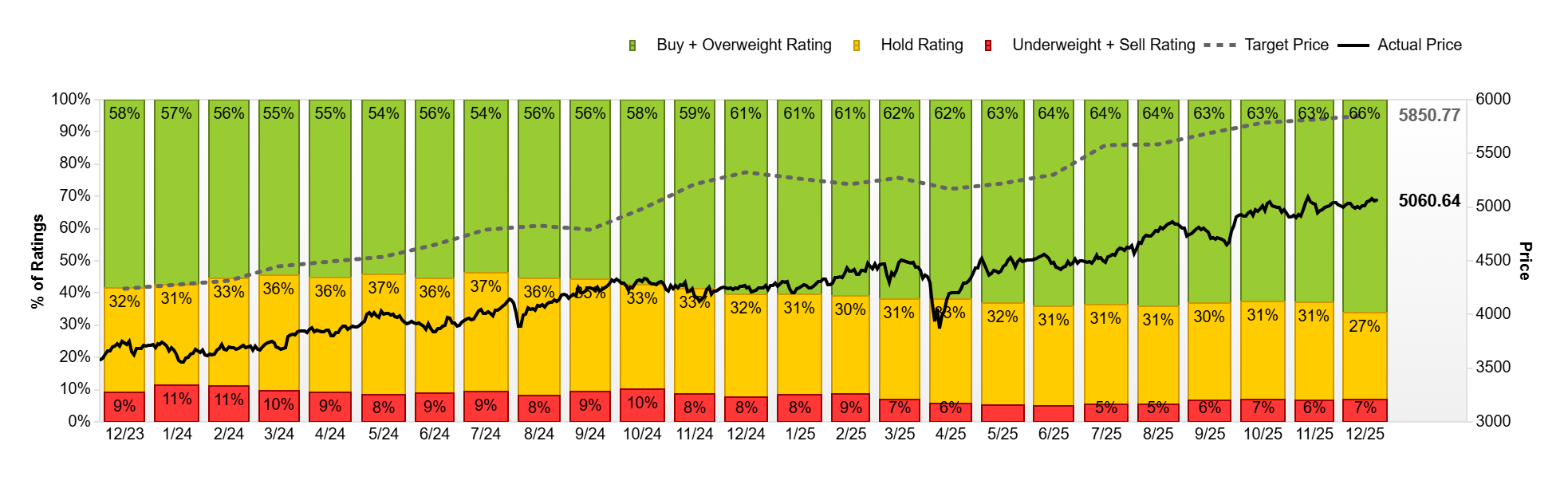 Σε αυτό το πλαίσιο, οι τιμές-στόχοι και οι συστάσεις για τους βασικούς χρηματιστηριακούς δείκτες αποκτούν ιδιαίτερη σημασία, καθώς αποτυπώνουν το συλλογικό στίγμα των αναλυτών για το πού βρίσκονται οι αγορές στο τέλος του 2025 και ποια δυναμική εξακολουθούν να βλέπουν για την επόμενη χρονιά. Τα διαθέσιμα στοιχεία δείχνουν ότι, παρά τη μερική αποκλιμάκωση των προσδοκιών τους τελευταίους μήνες, το επενδυτικό αφήγημα παραμένει σε μεγάλο βαθμό αισιόδοξο.