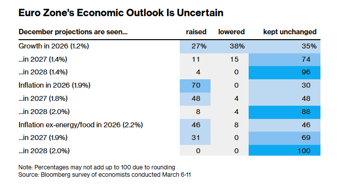 Σχεδόν το 80% δηλώνει ότι οι νέες τριμηνιαίες προβλέψεις που θα δημοσιευθούν την ίδια στιγμή με την απόφαση πολιτικής της επόμενης εβδομάδας θα περιέχουν μόνο «περιορισμένες» ή «πολύ περιορισμένες» πληροφορίες.