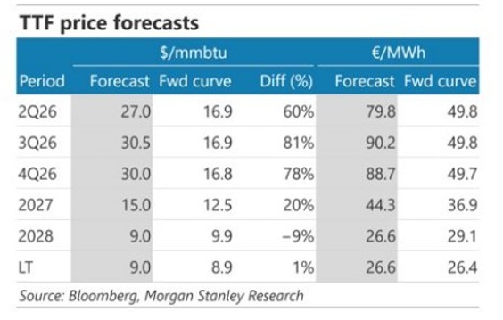 Η Morgan Stanley επισημαίνει ότι μέχρι σήμερα η χαμηλή ζήτηση, λόγω ήπιων καιρικών συνθηκών, και η απουσία άμεσων διαταραχών στις ροές LNG συγκρατούσαν την αγορά. Ωστόσο, το «κενό» στην προσφορά φυσικού αερίου πλησιάζει, καθώς μειώνονται τα διαθέσιμα αποθέματα και περιορίζονται οι εναλλακτικές πηγές τροφοδοσίας.