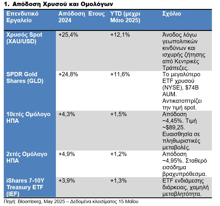 - Τακτική επαναξιολόγηση: Ευθυγράμμιση χαρτοφυλακίου με τις εξελίξεις στη νομισματική πολιτική, τα πραγματικά επιτόκια και τον γεωπολιτικό κίνδυνο.
