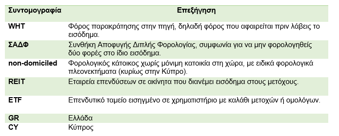 Συγκριτικός πίνακας φορολογίας επενδυτικού εισοδήματος