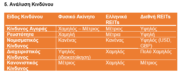 Αν και τα ακίνητα προσφέρουν «ασφάλεια», απαιτούν χρόνο, γνώσεις και διαχείριση. Τα REITs προσφέρουν επαγγελματική διαχείριση και ρευστότητα, αλλά έχουν μεταβλητότητα και φορολογική πολυπλοκότητα.