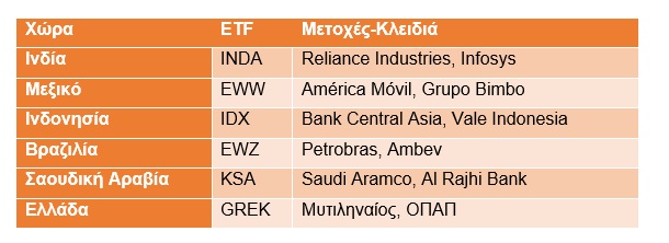 Τέλος, ο κίνδυνος Κίνας – λόγω γεωπολιτικών εντάσεων και ρυθμιστικών παρεμβάσεων – έχει οδηγήσει πολλούς επενδυτές να μειώσουν την έκθεσή τους σε China-heavy ETFs και να ενισχύσουν την παρουσία τους σε αγορές όπως η Ινδία, το Μεξικό και η Ινδονησία.