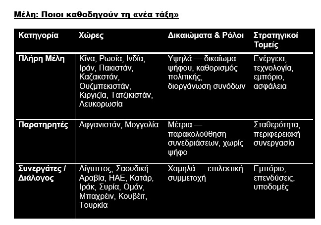 Βασικό Σημείο: Η SCO δεν είναι πλέον περιφερειακή. Με την ένταξη αραβικών κρατών ως συνεργάτες διαλόγου, η SCO εξελίσσεται σε έναν πολυπολικό αντίβαρο στις δυτικές συμμαχίες, με επιρροή σε Ασία, Αφρική και Μέση Ανατολή.