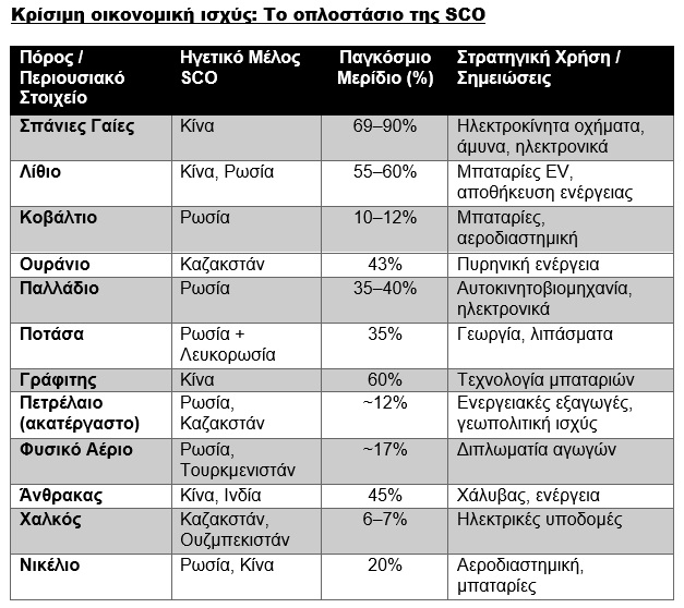 Στρατηγικό Σημείο: Τα μέλη της SCO ελέγχουν τους βασικούς πόρους του μέλλοντος, προσφέροντας γεωπολιτικό πλεονέκτημα σε τεχνολογία, ενέργεια και γεωργία.