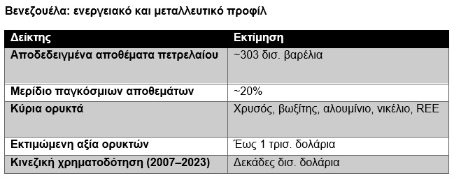 Η Βενεζουέλα διαθέτει τα μεγαλύτερα αποδεδειγμένα αποθέματα πετρελαίου στον κόσμο: περίπου 303 δισ. βαρέλια, σχεδόν το 20% του παγκόσμιου συνόλου. Η επέμβαση του 2026 σηματοδοτεί την επιστροφή ενός γνώριμου αλλά ανανεωμένου μοντέλου: του resource imperialism, αυτή τη φορά με τη μορφή «επενδυτικής διαχείρισης» και ενεργειακής σταθεροποίησης.