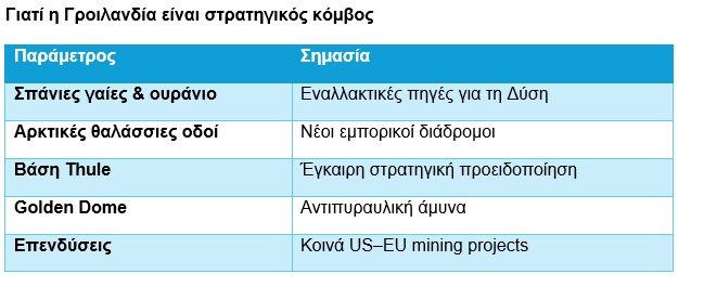 Η Γροιλανδία αποτελεί πρότυπο ενός νέου μοντέλου: αμυντικο-οικονομικές συμμαχίες με ενσωματωμένη πρόσβαση σε φυσικούς πόρους.