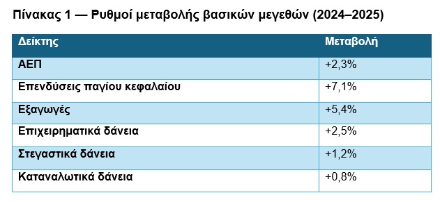 Τα τελευταία δύο χρόνια η ελληνική οικονομία εμφανίζει σταθερή αναπτυξιακή δυναμική. Οι επενδύσεις αυξάνονται, οι εξαγωγές ενισχύονται και το ΑΕΠ διατηρεί θετικούς ρυθμούς μεταβολής. Ωστόσο, η πιστωτική επέκταση παραμένει αισθητά χαμηλότερη από αυτό που θα περίμενε κανείς σε μια οικονομία σε φάση ανάκαμψης.