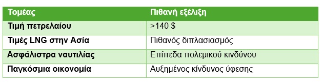 Σε ένα τέτοιο σενάριο, το κρίσιμο ερώτημα δεν θα ήταν μόνο το επίπεδο των τιμών αλλά η ικανότητα φυσικής τροφοδοσίας κρίσιμων αγορών με LNG.