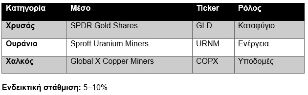 Ο χρυσός λειτουργεί ως αντιστάθμιση νομισματικού και συστημικού κινδύνου, ενώ τα στρατηγικά μέταλλα υποστηρίζουν τη μακροχρόνια ενεργειακή μετάβαση.