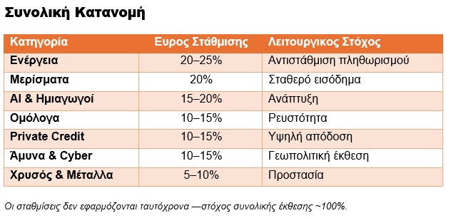 Η επενδυτική στρατηγική του 2026 δεν βασίζεται στην πρόβλεψη γεγονότων, αλλά στη δομή του χαρτοφυλακίου. Σε ένα περιβάλλον αυξημένης μεταβλητότητας και επίμονου πληθωρισμού, η διαφοροποίηση σε πραγματικά assets, εισοδηματικές ροές και δομική ανάπτυξη καθίσταται κρίσιμη.