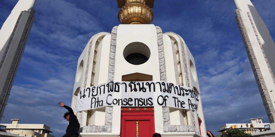 Υποστηρικτές του κόμματος Move Forward της Ταϊλάνδης συγκεντρώθηκαν στο Μνημείο Δημοκρατίας στην Μπανγκόκ, αφότου ο Pita Limjaroenrat εμποδίστηκε να γίνει πρωθυπουργός στις 19 Ιουλίου 2023. Reuters/Athit Perawongmetha