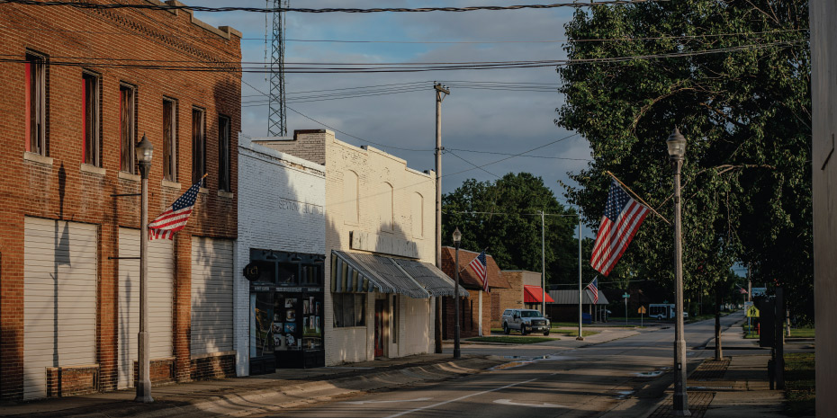 Κέντρο της πόλης Κένετ στο Μιζούρι, στις αρχές της χρονιάς. Το 2007, το 67% των Αμερικανών και Καναδών που συμμετείχαν σε δημοσκόπηση του Gallup δήλωσαν ότι ευημερούν. Σήμερα, το ποσοστό αυτό έχει πέσει στο 49%
